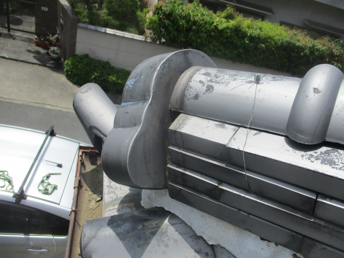 ご訪問させて頂くと、1階いぶし瓦屋根の鬼瓦が傾いている状況でした。