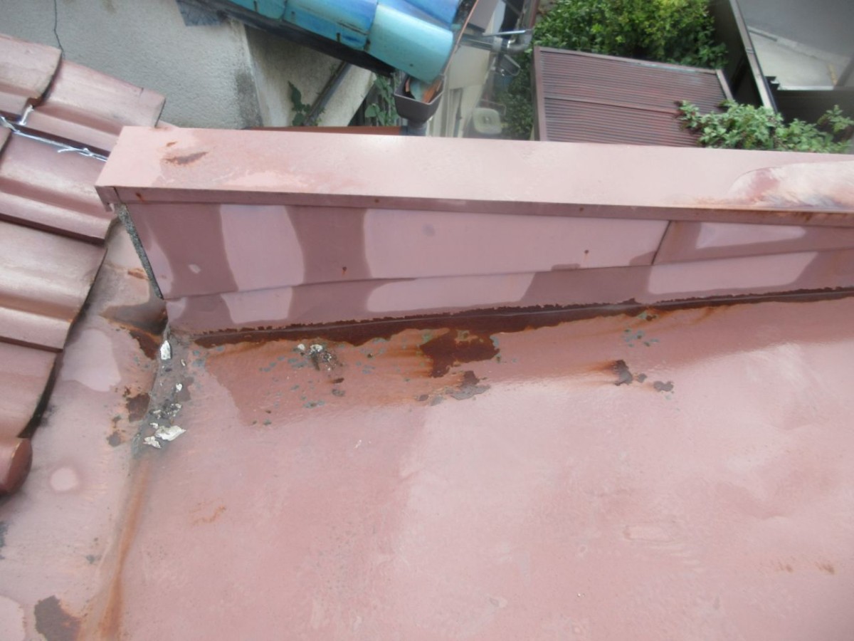 『 増築建物の金属屋根部分の錆びからの雨水の浸入 』