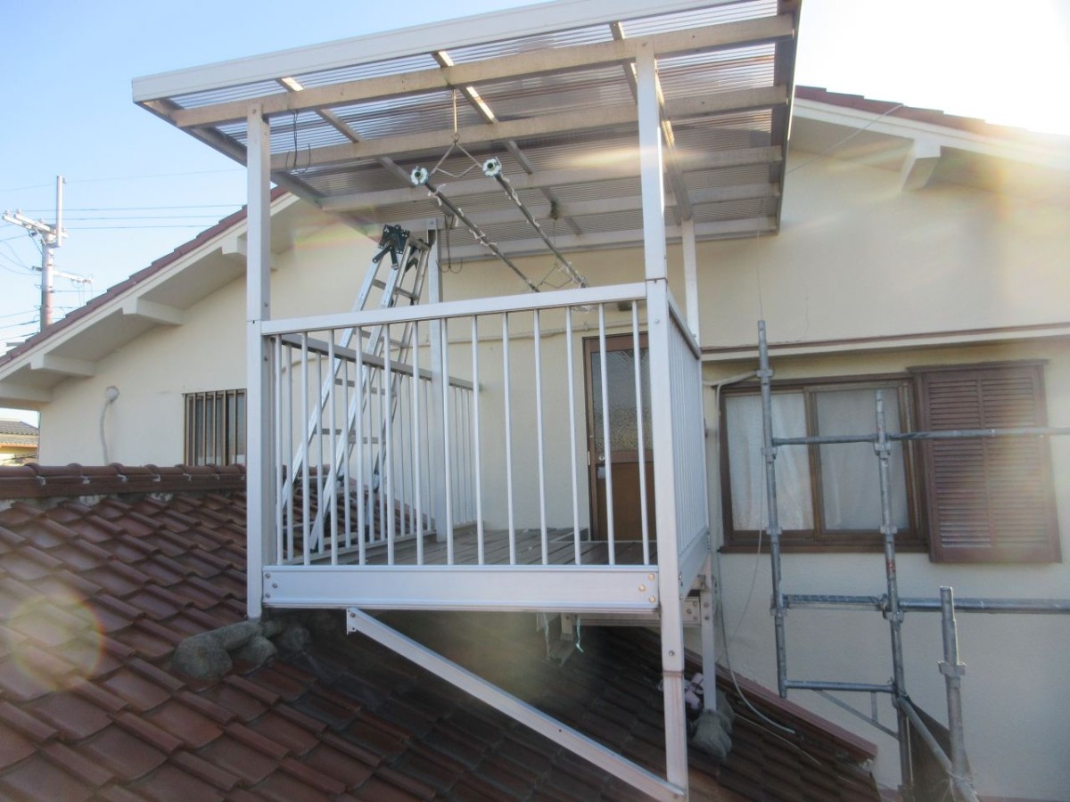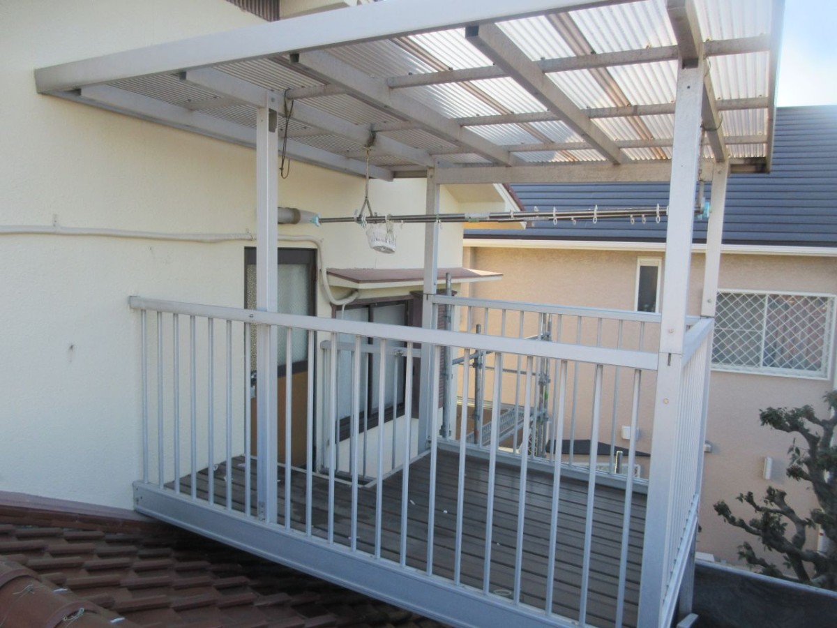 大きなアルミテラスが不安定な状態で設置されておりましたので、