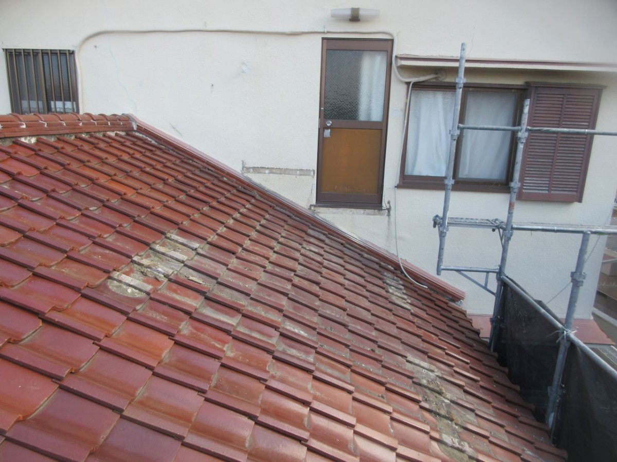 また、同じく1階屋根の瓦屋根部分の傷みも