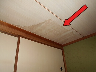 屋根からの雨漏りをしているお客様の家に急行すると、たいていの場合は天井にシミや腐食がみられます。