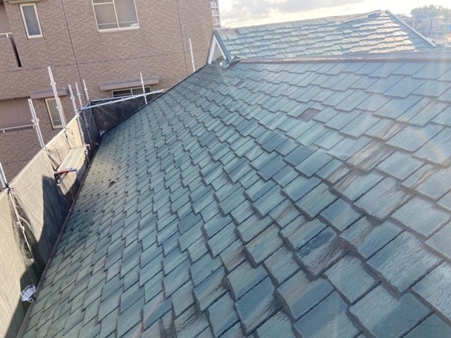 屋根材の色合いが工事前と同じような色合いの為、そこまで変わり映えはしませんが、綺麗に仕上がりました ♪
