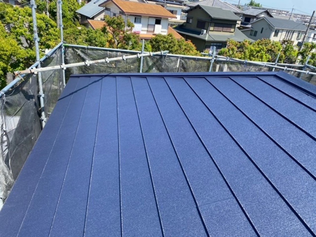工事後の屋根材:スーパーガルテクトは1㎡あたりの屋根材重量が約5kgの為、