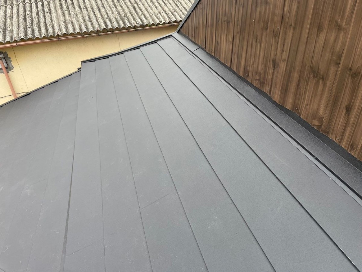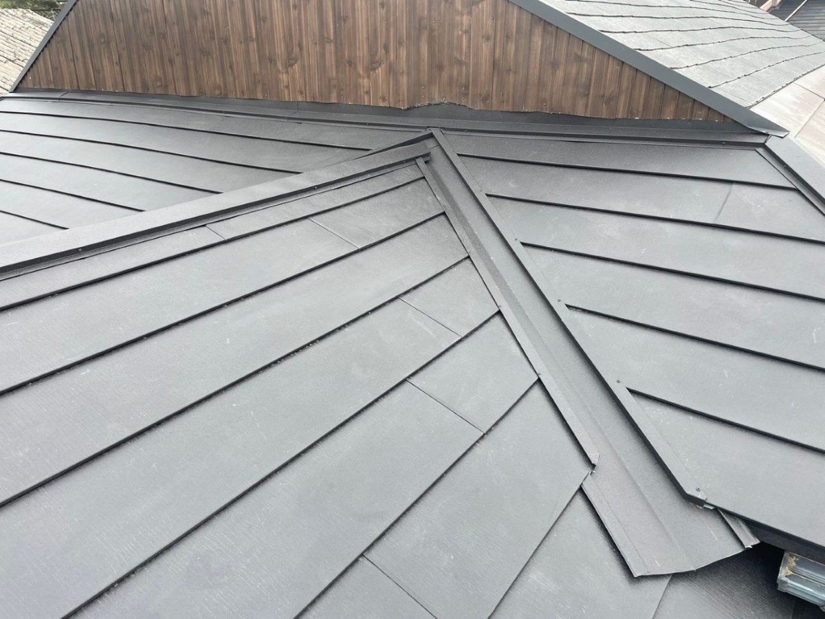 今回仕上げの屋根材:スーパーガルテクトを施工し、屋根葺き替え工事完了です ♪
