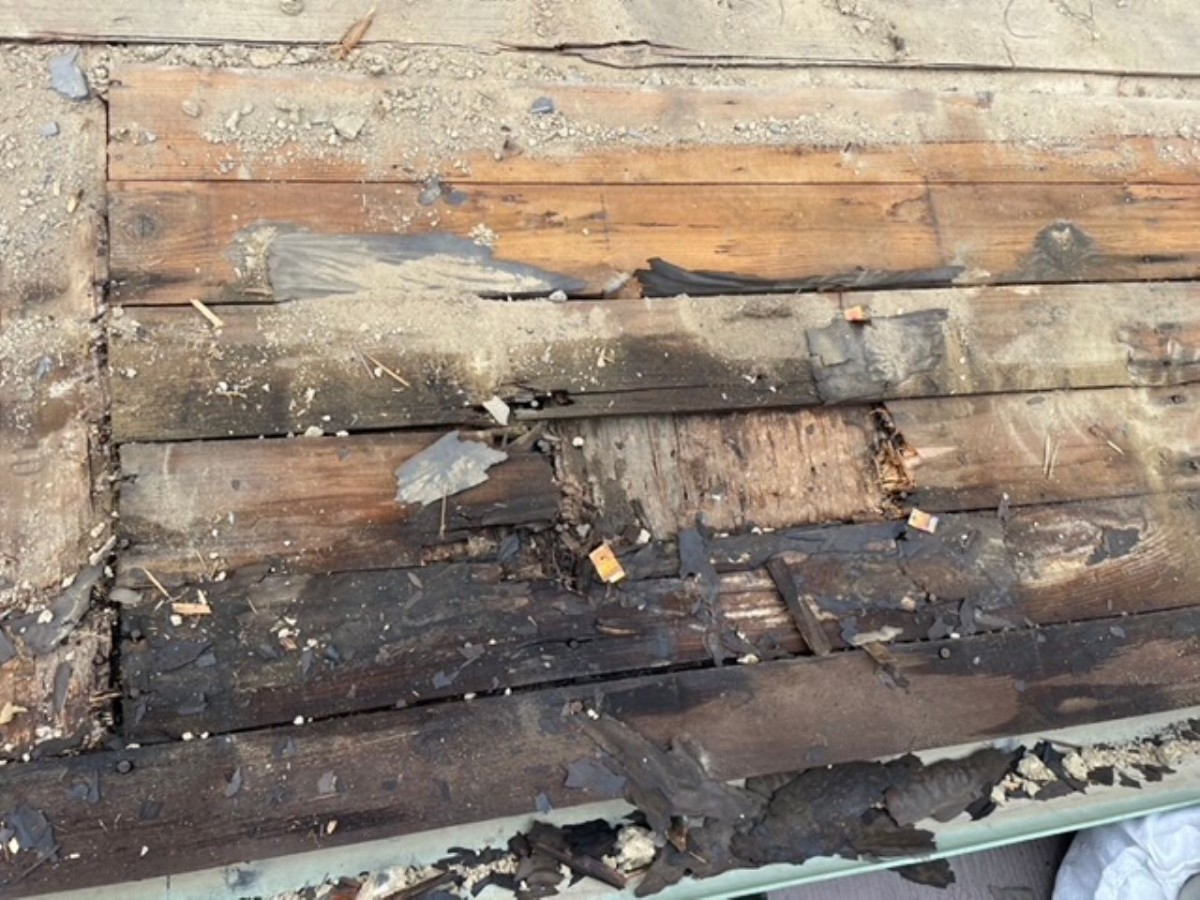 もともと銅板が葺かれていた箇所の木下地を見て頂くと、雨漏りの状態が一目瞭然です。