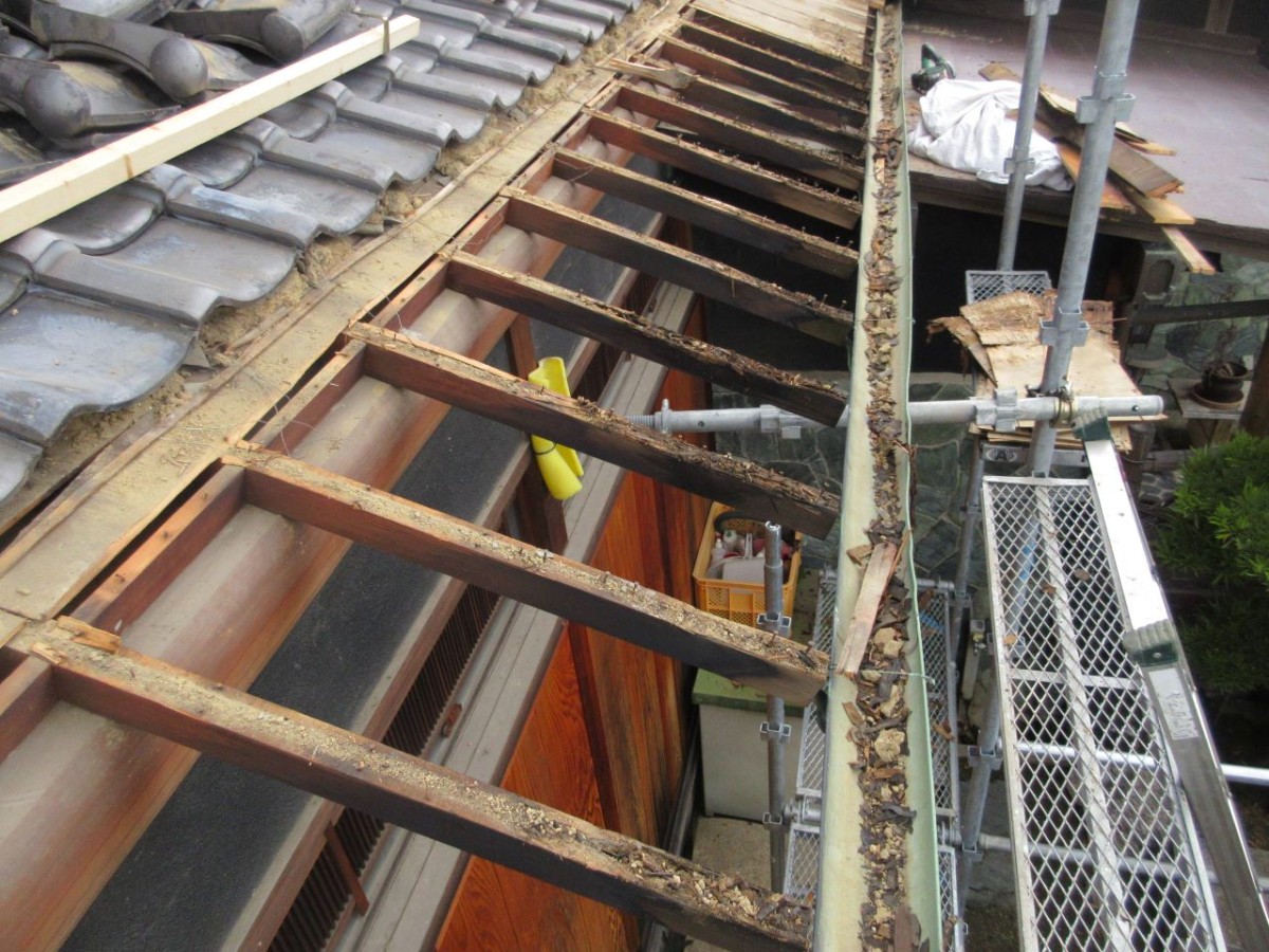 工事前、雨漏りが長期間起きていた為、ひどい箇所は木部が腐食しておりました。