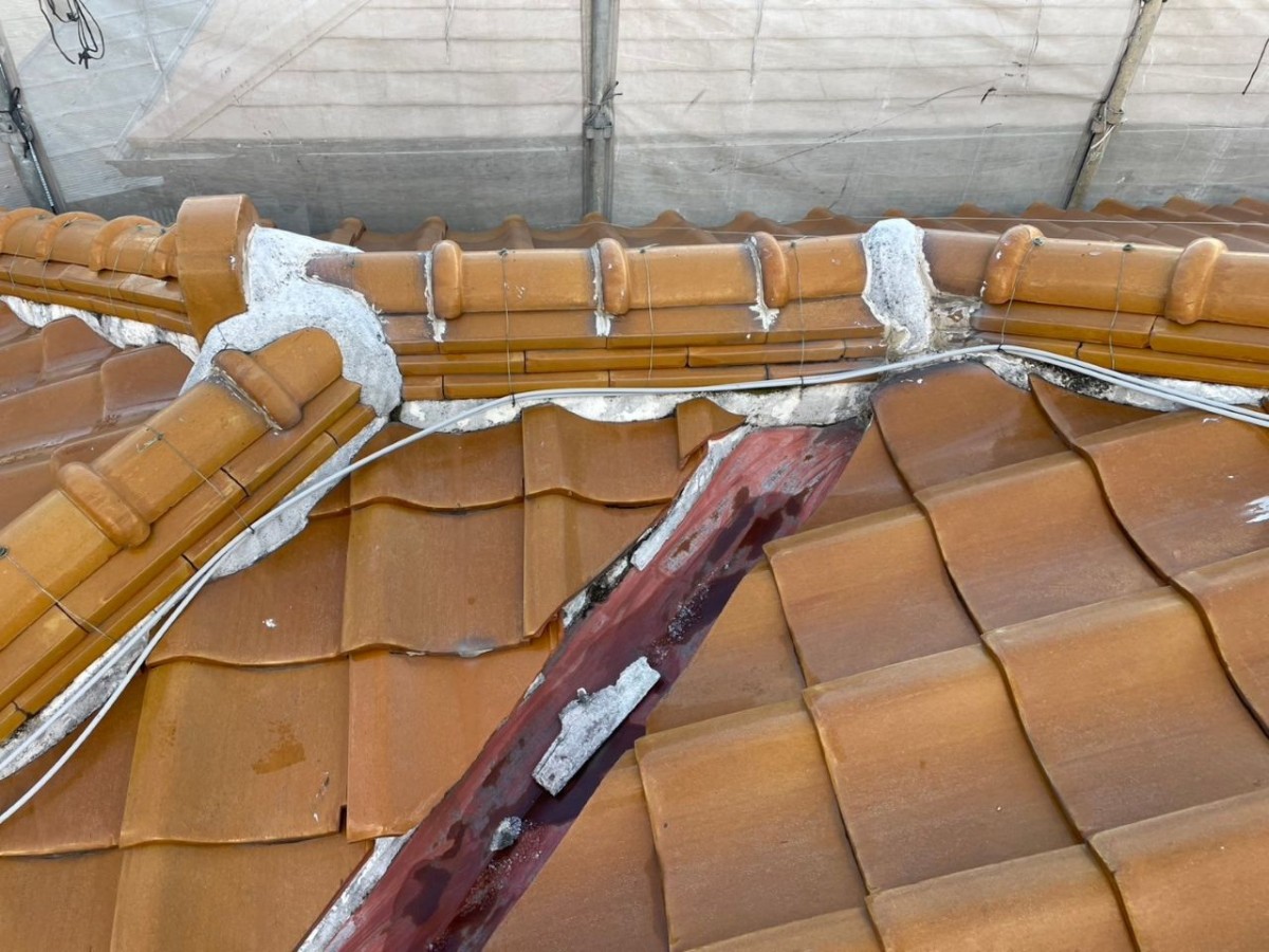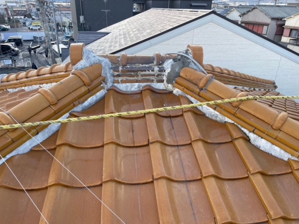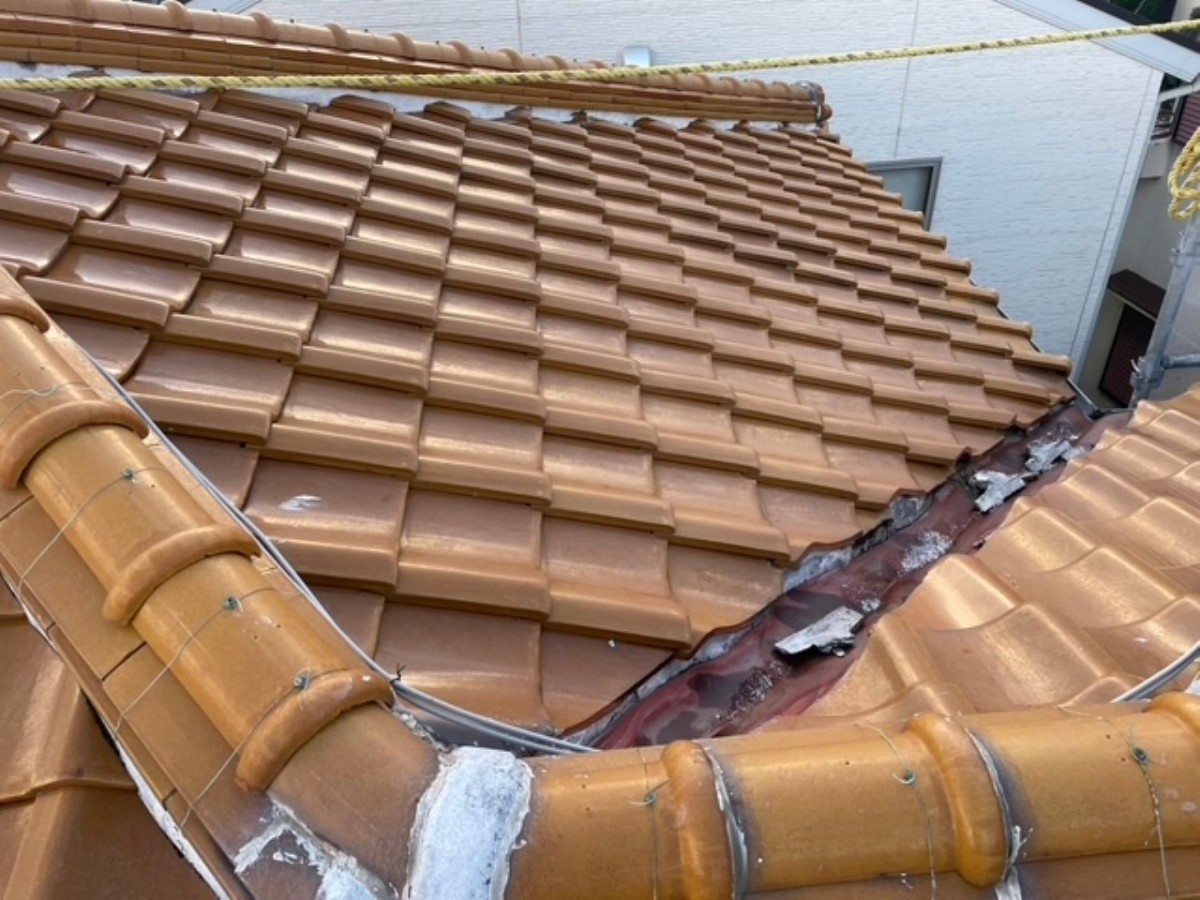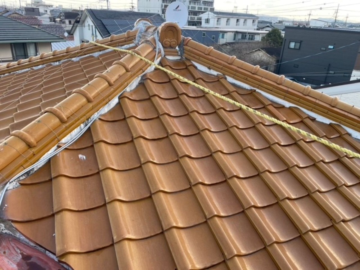 今回の仕上げは、周りの既存屋根と見た目のバランスをとるため、釉薬瓦(オレンジ色)です。