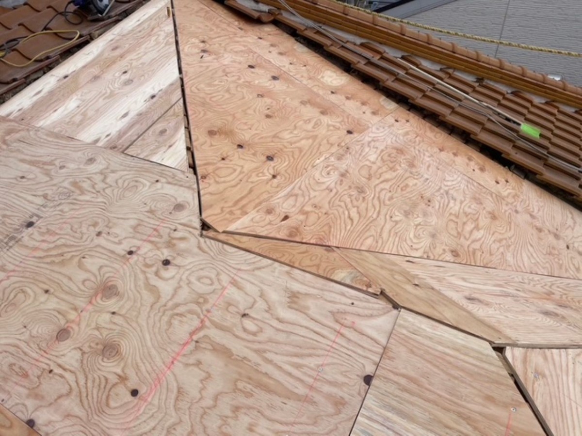 既存野地板の上にコンパネを施工することにより、屋根下地が強化されます。