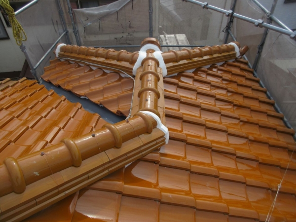 大阪府堺市東区北野田 T様邸 屋根葺き替え工事(部分葺き替え・釉薬瓦) 参考価格:100万円